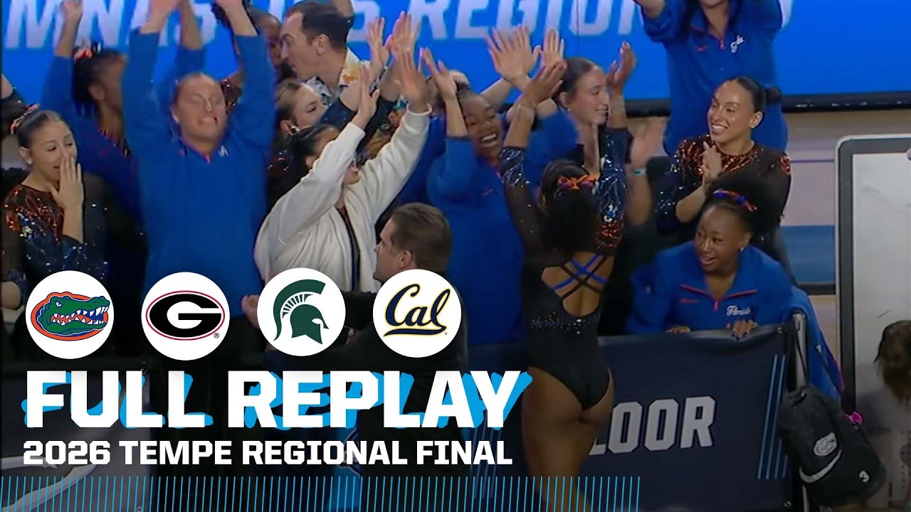 Watch the full broadcast replay of the 2026 NCAA women's gymnastics Tempe Regional finals, where Florida and Georgia both advanced to national championships. Cal and Michigan State were the other two teams competing in Tempe, Arizona.