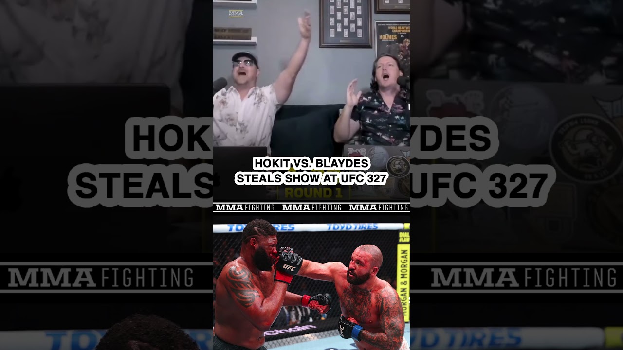#joshhokit and #curtisblaydes delivered a brawl for the ages at #ufc327, and MMA Fighting's Mike Heck and Jed Meshew were all of us watching it #live.